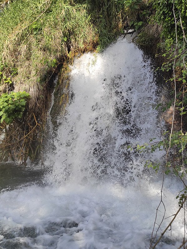 Desde aquí te deberías de adentrar en un denso bosque de ribera hasta llegar a la Casa y la Central del Salto donde podrás ver la cascada más grande de las tres de la ruta. Sin embargo, cuando nosotros fuimos en el año 2022, el acceso estaba cortado y no había apenas señalización, por lo que tuvimos que saltarnos esta parte de la ruta. Dimos la vuelta y volvimos sobre nuestros pasos.
